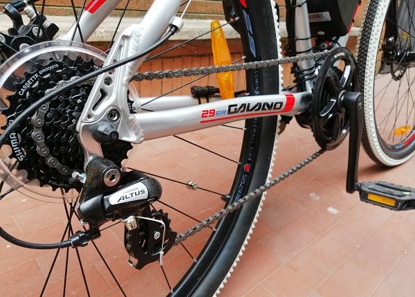 Bici elettrica Galano 29 usata con coppia e potenza grazie al motore elettrico centrale installato.